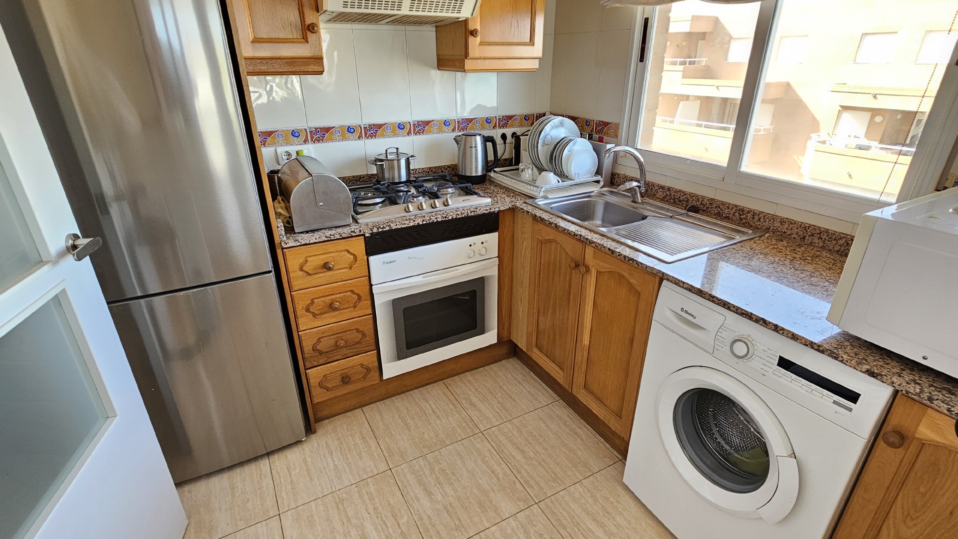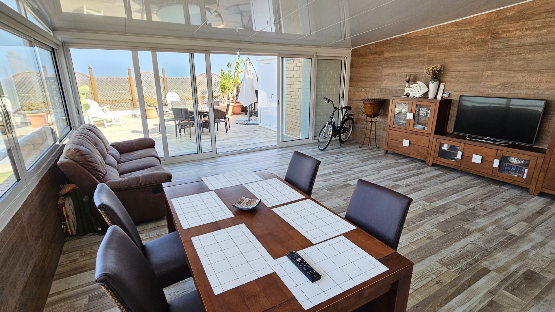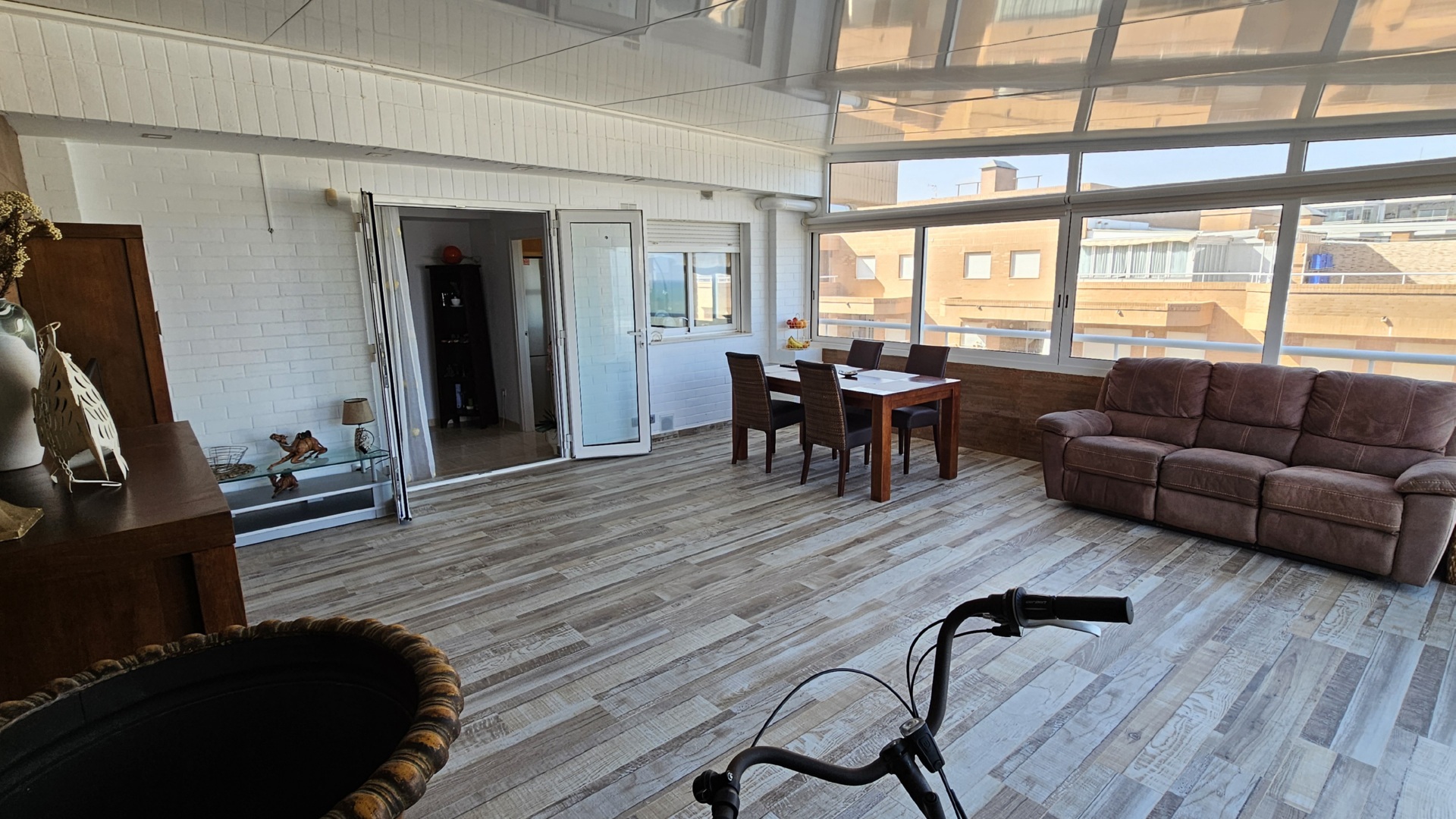 Se vende espectacular Apartamento de tres amplias habitaciones y dos baños reformados. Atico, frente al mar Mediterráneo con orientación Oeste con una enorme terraza de 90m2, la mitad de terraza es descubierta y la otra mitad acristalada con vistas espectaculares al mar. Se vende amueblado con los muebles exclusivos y con electrodomésticos incluidos tal como se ven en las fotos,en el precio incluye una plaza de garaje situada en el sótano. Dispone de aire acondicionado frio calor. El edificio esta situado muy cerca de los supermercados, con buena playa delante, piscina con césped y se encuentra en la zona muy centrica dentro de la urbanización conocida como Marina dOr o Magic World. Rogamos avisen las posibles visitas con antelación. Sin comisiones